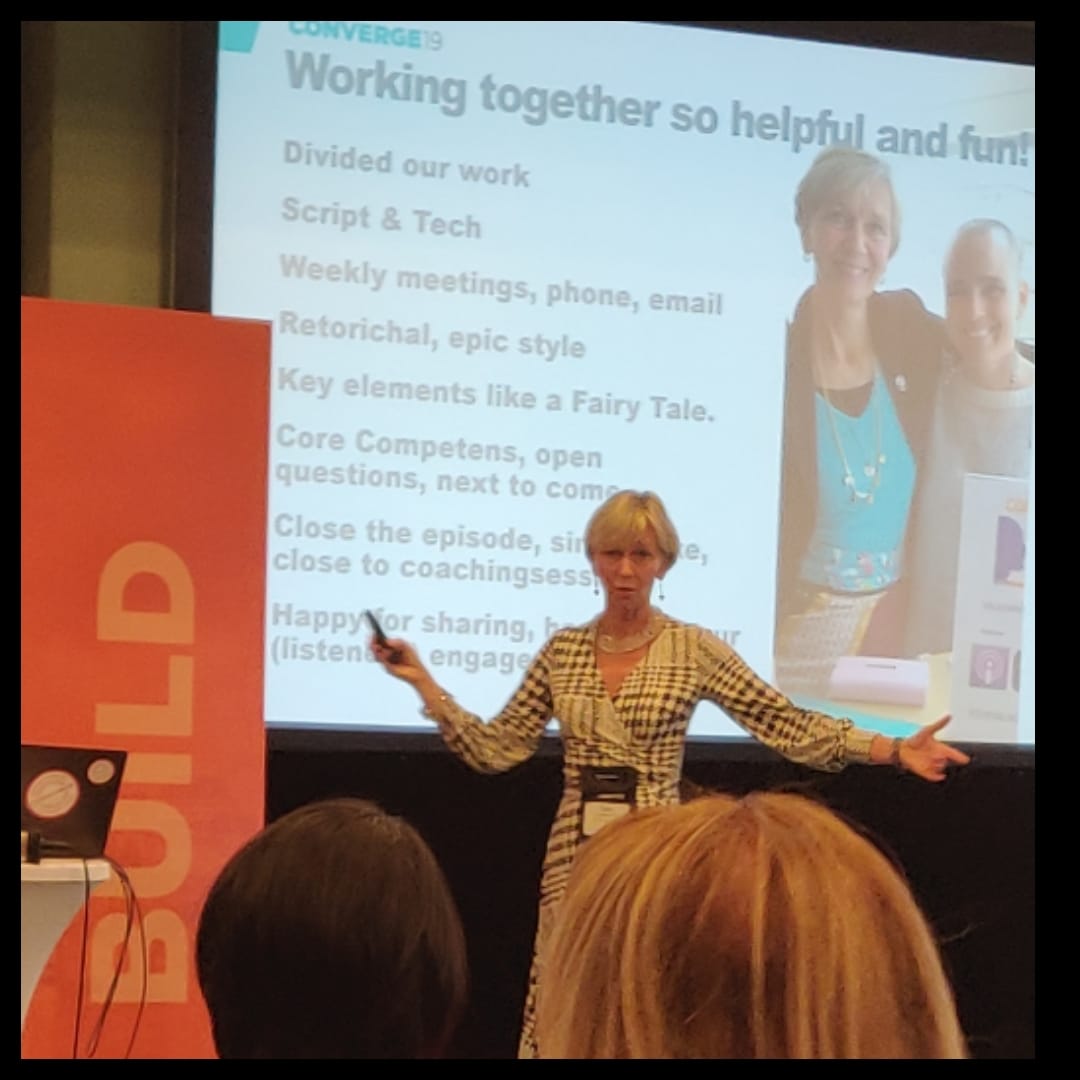 Den svenska gruppen på Converge växer, vi är fler och fler som åker. Under inledningen visas traditionellt vid globala konferenser flaggor för alla länder som deltar och det var en stor grupp som ställde sig upp för Sveriges flagga. I år har vi också haft glädjen att representeras av en talare. Carin Bladh hade på fredagseftermiddagen en session där hon berättade om ICF coachpodden och hur den arbetats fram inom ICF Sverige. Ett tjugotal deltagare lyssnade intresserat när hon beskrev vad som lärts medan de byggt den.